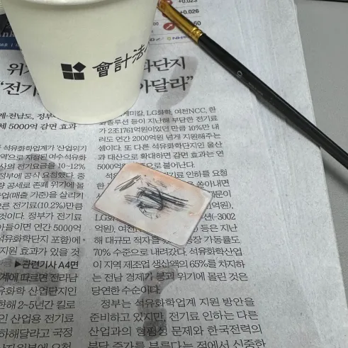 신너칠을 하는 방법은 간단합니다. 신너를 그릇에 살짝 덜고 (이번엔 종이컵을 사용했지만 신너는 종이컵의 코팅을 녹이므로 알루미늄과 같은 소재의 종지를 사용해야합니다!! 컵을 괜히 겹쳐둔것이 아닙니다.)