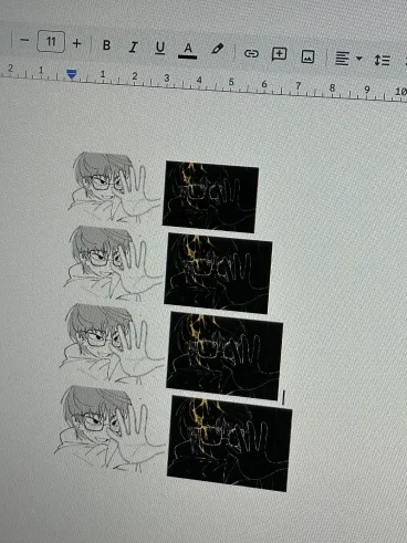 후다닥 그려서 완성한 후 완성된 그림을 용지 위에 요리조리 배치해봅니다.